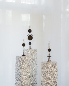 Pour Artefact 29 et Artefact 30, ils ont, sans se connaître, participé tous deux au processus de création. « Naritoshi Suzuki m’a vraiment fait confiance. C’était super. On a choisi ensemble certaines de ses pièces. » explique Clara Imbert. Des pièces chargées de symboles qui repensées par Clara deviennent des œuvres, des totems.