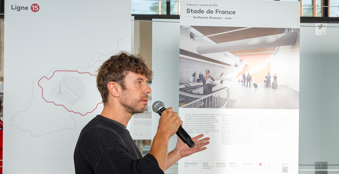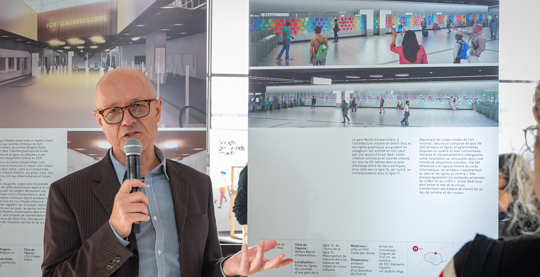 Les 70 œuvres d'art qui habilleront les futures gares du Grand Paris Express ont été révélées le 2 octobre en présence de Corentin Duprey, vice-président du Département en charge des mobilités durables et du développement du territoire.