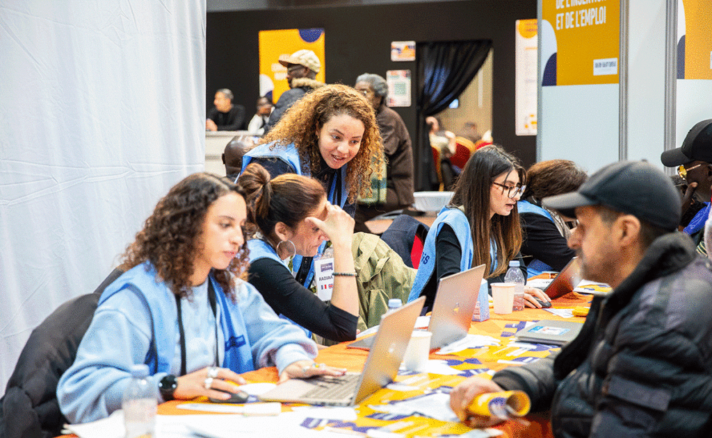 85 600 personnes sont allocataires du Revenu de Solidarité Active (RSA) en Seine-Saint-Denis. Le Département mène des actions de grande envergure afin de les accompagner vers l’insertion sociale et l’insertion dans l’emploi. Le Salon Insertion Formation Emploi organisé par le Département en collaboration avec plus d’une centaine de partenaires, réunit, chaque année depuis plus de dix ans, professionnel·les, associations, organismes de formation et allocataires. -Mardi 14 avril, 3 800 habitant·es, notamment bénéficiaires du RSA, ont répondu présent·es. Une opportunité pour elles et eux d’échanger avec des recruteur·euses, de découvrir des formations ou des offres d’emploi et de s’informer sur leurs droits. Des ateliers numériques ont aussi permis à elles et eux de tester leurs connaissances.