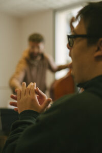 Volodia : Nous avons été séduits par l’idée de faire des concerts en Seine-Saint-Denis, ce territoire qui nous a accueilli, et par le volet Inclusion de l’appel à projets. La tournée Polycordes nous plaisait beaucoup car elle s’intégrait bien avec nos valeurs en s’adressant à des personnes en situation de handicap dans des foyers d’établissement d’accueil. Nous avons été lauréats de cette tournée et on a ainsi pu jouer et faire des actions de médiation au foyer résidence Le logis accueillant des personnes handicapées moteur à Noisy-le-Grand et aujourd’hui nous sommes ici dans cette même démarche.