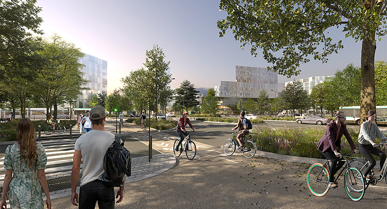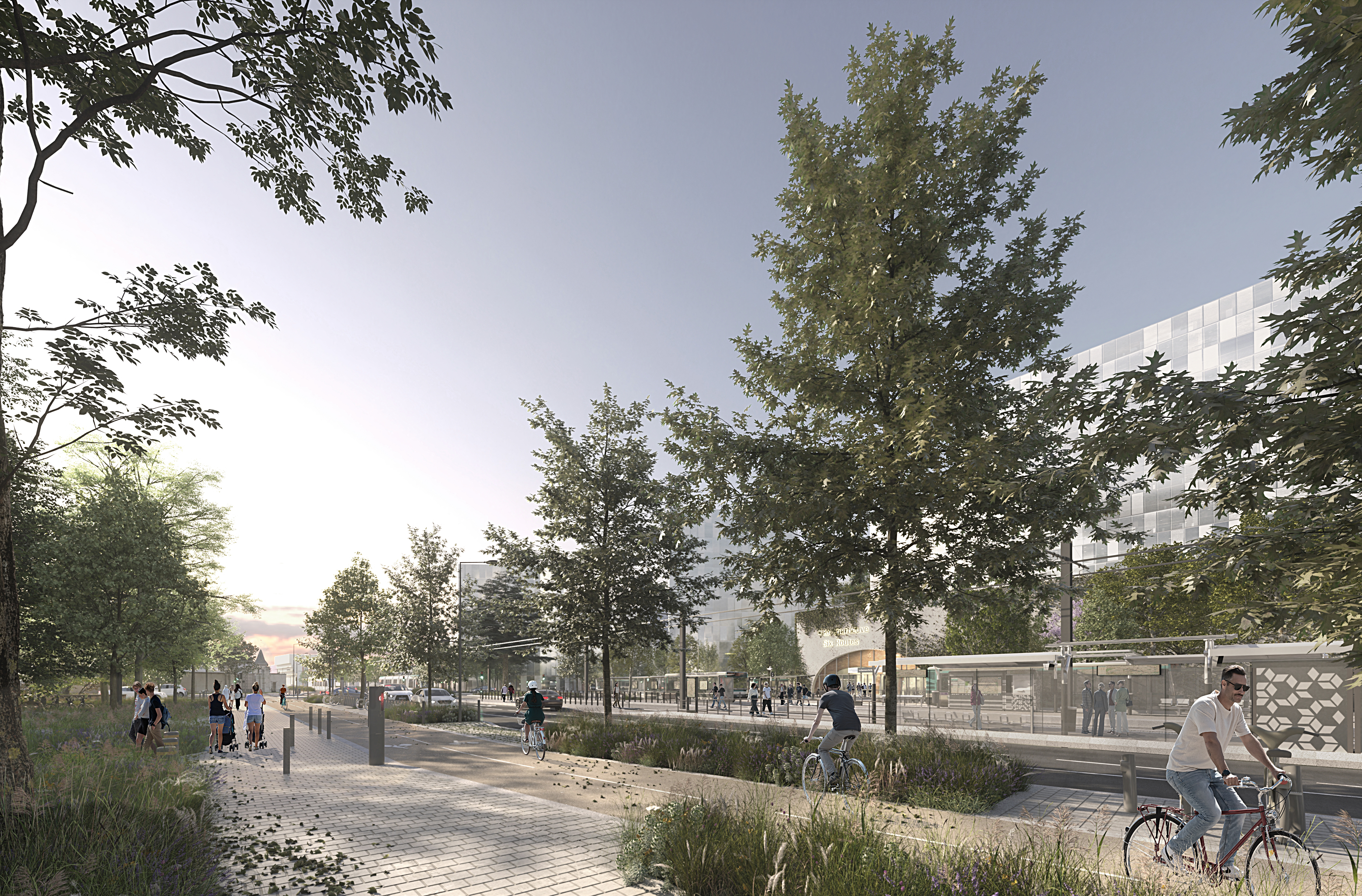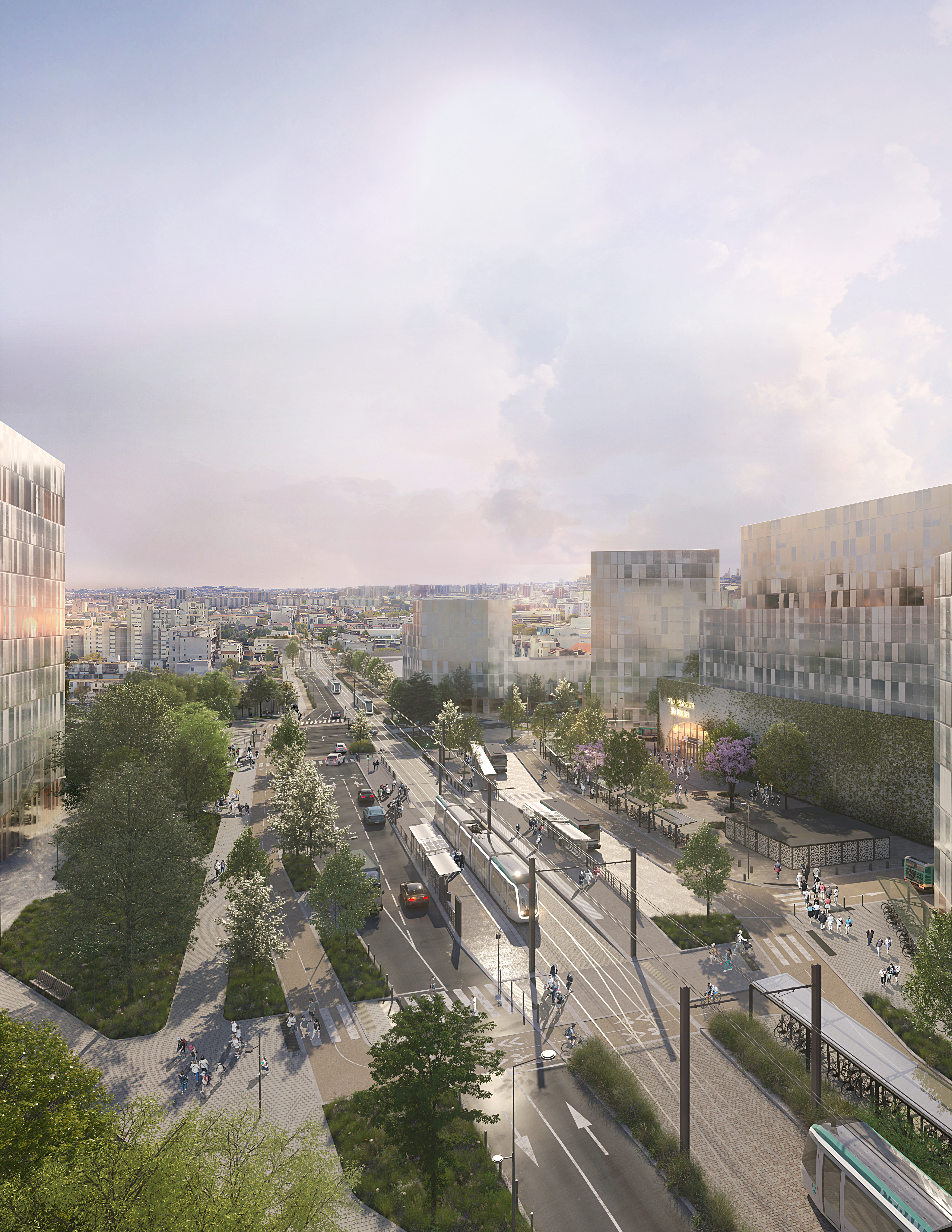 Porté par le Département de la Seine-Saint-Denis, l’EPT Plaine Commune et la Ville de La Courneuve, le projet combine la reconfiguration du carrefour routier et la création d’un nouveau quartier de 13 hectares.