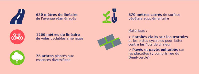 - Développer le potentiel paysager de l’avenue comme véritable corridor jusqu’au Parc des Beaumonts en améliorant ainsi le cadre de vie du quartier tout en s’inscrivant dans le Plan Canopée voté en juin 2020 par le Conseil Départemental.