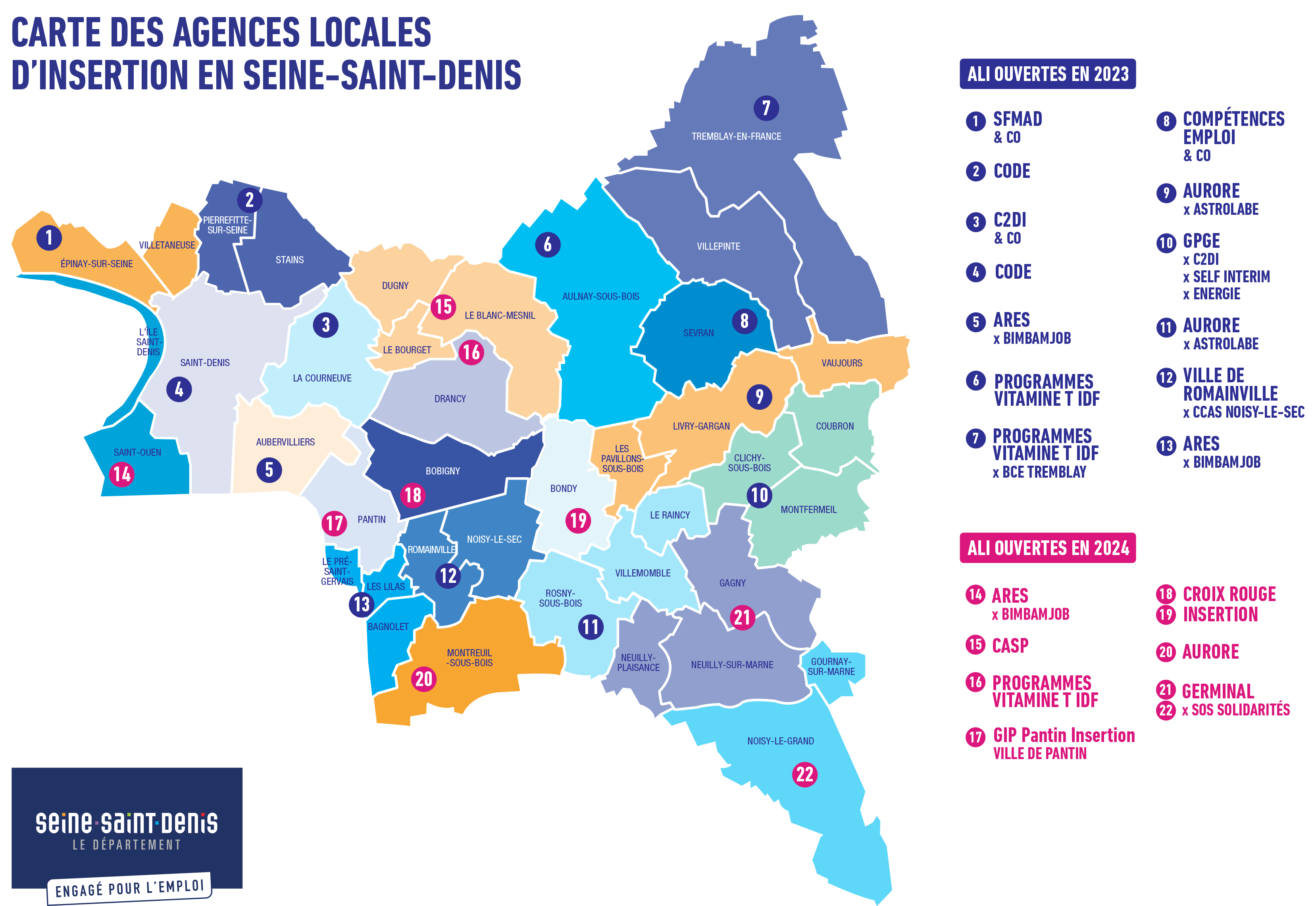 Les Agences Locales d’Insertion (ALI) sont réparties sur tout le territoire de la Seine-Saint-Denis.
