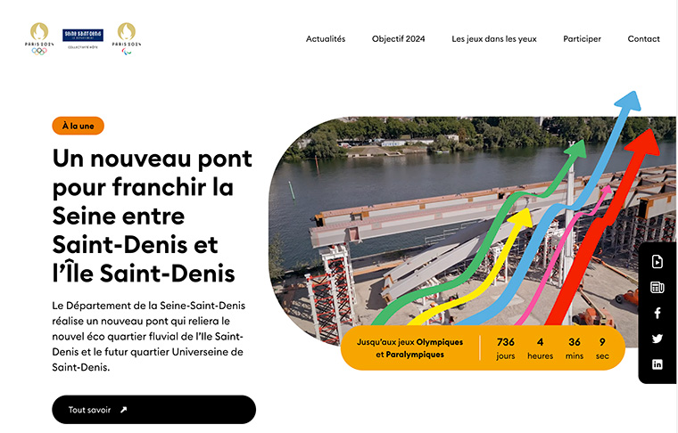 Plus qu’un événement mondial, les Jeux Olympiques et Paralympiques de Paris 2024, c’est aussi l’occasion d’accélérer le développement de notre territoire avec la construction d’aménagements et d’équipements pour les besoin de tou·te·s. Pour suivre ces avancées, le Département met en place une page d’information et une newsletter hebdomadaire sur l’actualité des jeux olympiques et paralympiques en Seine-Saint-Denis