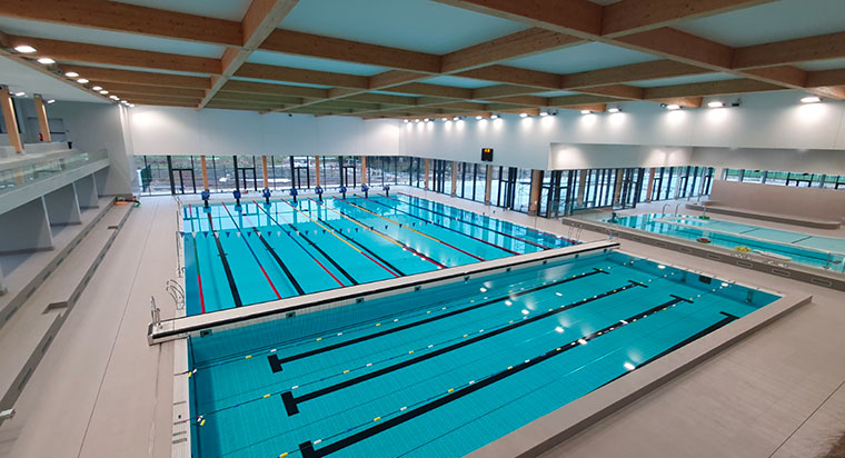 Construit dans le cadre de l’accueil des Jeux Olympiques et Paralympiques de Paris 2024, le centre aquatique du parc des sports de Marville est réalisé par l’entreprise GCC sous maîtrise d’ouvrage du Département de la Seine-Saint-Denis et sous la supervision de la SOLIDEO.